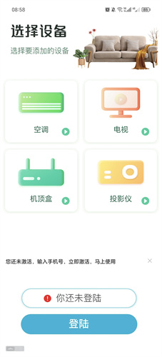 2、随后可以在空调、电视、机顶盒、投影仪四个品类中自由选择。