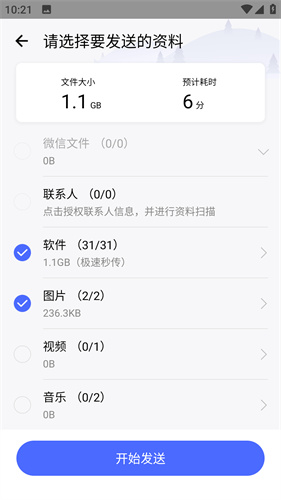 1、旧机发送的方式非常简单,用户可以详细的选择想要发送的数据。