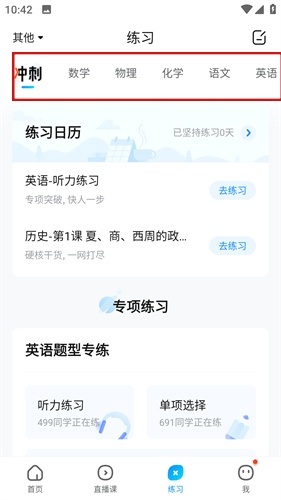 2、涵盖了学习的所有科目,从数学、英语、语文等等科目都可以练习。