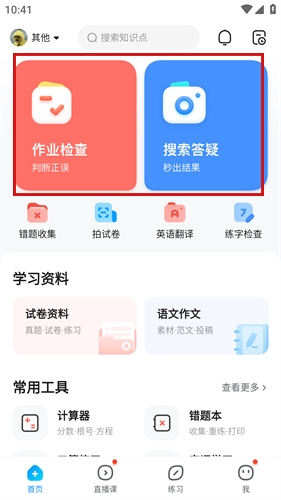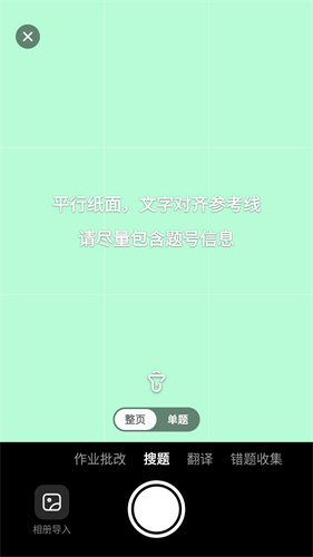 1、app内提供的作业搜题功能非常齐全,用户可以直接将题目进行拍照搜索也可以进行批改。