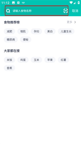 2、点击上方的搜索按钮即可进入具体食物查询功能内。