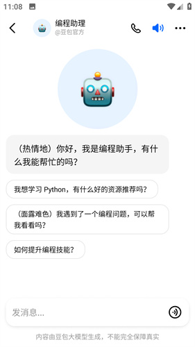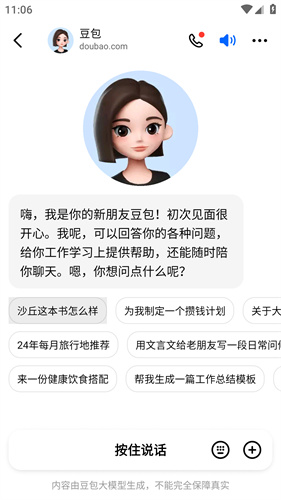豆包是抖音旗下的一款只能问答类聊天工具,如同一个助手一般来帮助用户来回答任何无法解决的问题,不管是日常生活中的学习、工作、文案等等内容都可以快速找到答案,并且大数据的介入让整体的回答更加流畅。对于不想打字沟通的用户来说,豆包app内也提供了语音的一键输入模式,让你的所有问题都能够清晰的表达出来,其回答的准确性与逻辑性都非常高,用户可以直接获取到想要问题答案十分便捷。除此之外简洁的界面内还蕴含了多种功能,让用户自由的探索来进行发掘吧。