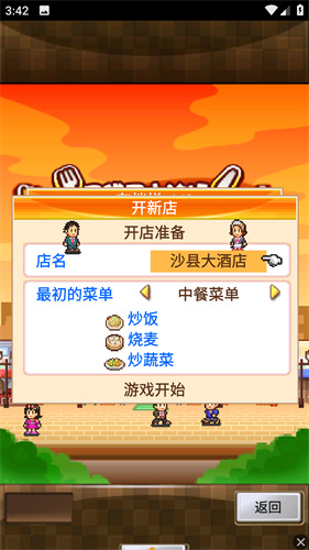 1、进入游戏后玩家需要选择喜欢的菜系与酒店名称。