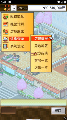 2、提供了周边餐厅的分布与经营情况,玩家可以根据当前的行情来选择扩张或安稳发展。