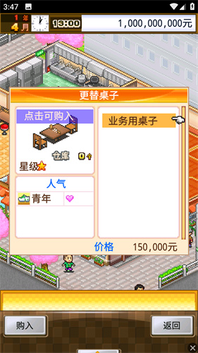 3、然后就是为空荡荡的餐厅购买桌椅,用来接待更多的顾客赚取收益。