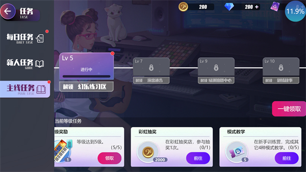3、每一次的歌曲高分都能够得到展现角色的机会,让你的个性化角色更加熠熠生辉吧。