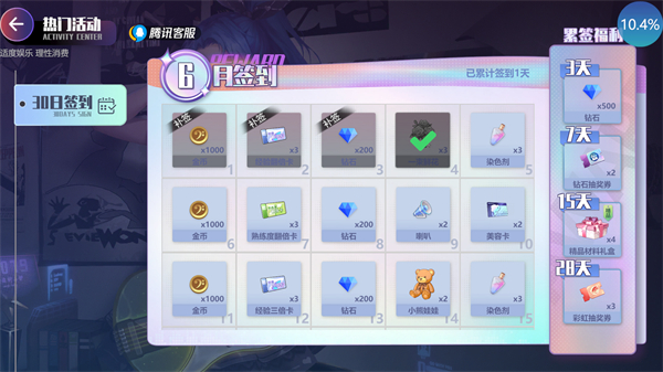 游戏内的签到活动在累计一定的天数后可以获取到免费时装奖励。