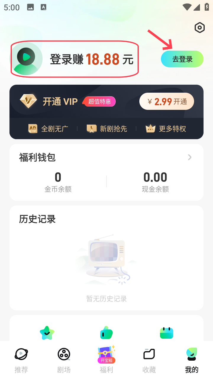 2、点击“去登录”