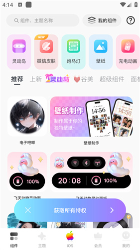 3、集合了目前市面上所有的主题相关功能,通过一键设置的方式让你手机更加丰富。