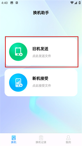 1、点击主页面中的旧机发送按钮,进入到详细的发送页面中。