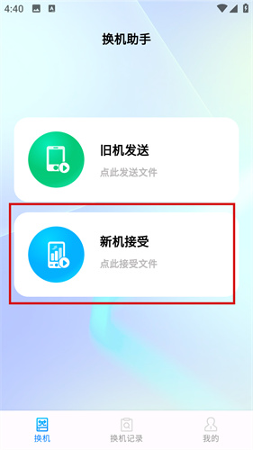 1、新机需要在主页面中点击新机接收按钮,随后将会进入到详细的界面中。