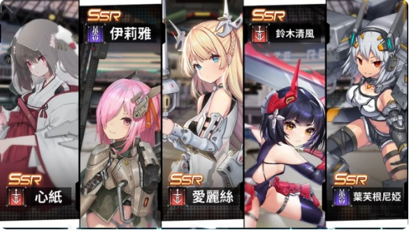 新手十连会在下图五位中必出一个SSR角色(心纸、伊莉雅、爱丽丝、铃木清风、叶芙根尼娅)。