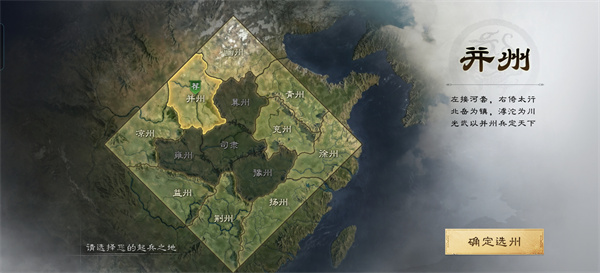 1、进入游戏后需要选择你的兵起之地,建议玩家选择周边地区进行发展。