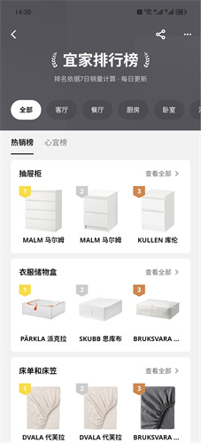 2、提供了排行榜的功能来帮助用户寻找热门且实惠的家居类型。