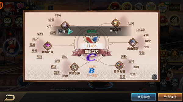 3、玩家需要不断的挑战游戏内的关卡来提升熟练度,并且通过装备等系统获取战力。