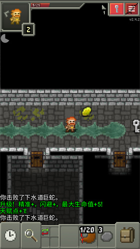 3、遇到危险的地牢生物时,通过点击的方式进行交战,需要注意主角的血量哦。