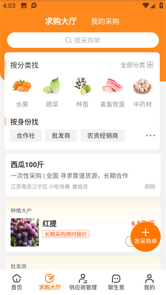3、另外有大宗需求的用户,也可以在求购大厅中发布你的求购单哦。