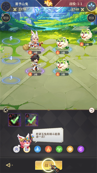 2、点击底部中间的“战役”,进入挑战区,开局就拥有两个角色,选择两个角色之后,点击战斗
