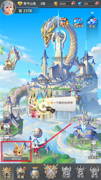 1、点击大厅中左下角的小宠物,这个就是挂机系统
