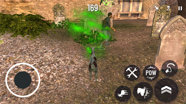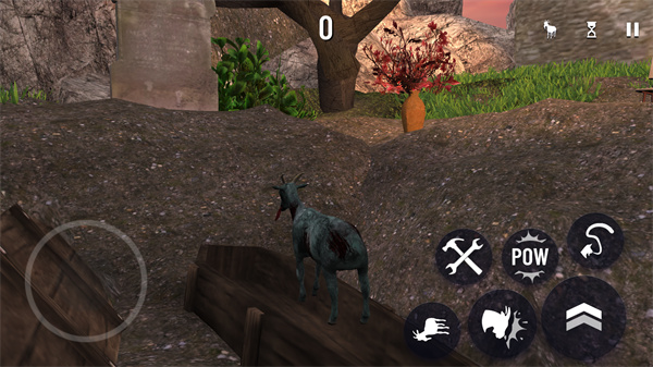 3、经典的左手移动右手释放技能的操作界面,让山羊在僵尸病毒爆发后开启冒险。