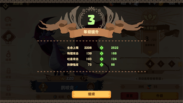 1、游戏内的所有龙在获取之后都能够进行升级,并且提供了大量的额外属性加成。