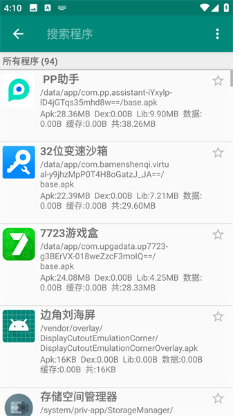 1、进入到软件后可以看到自动读取的所有应用程序文件信息。