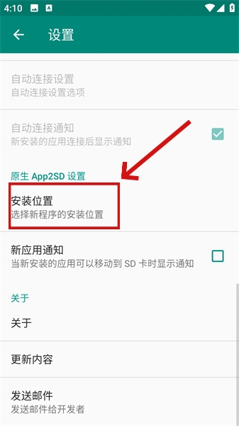 1、点击软件内的设置按钮后,向下进行滑动来寻找到“安装位置”选项。