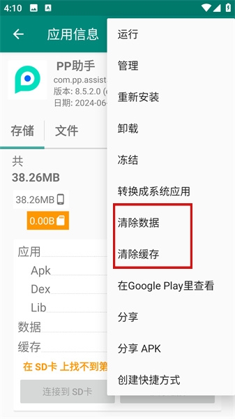 2、用户可以清理掉所有程序的内存相关信息,也可以单独清理dex文件缓存。