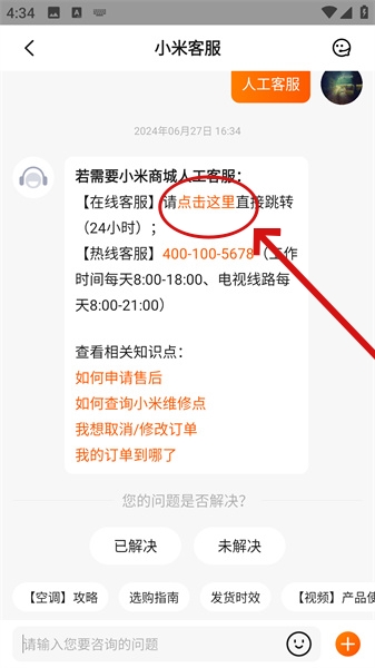 5、随后智能客服将会给出对应的回答,用户直接点击跳转!