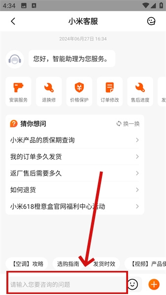 3、再点击右下角的“在线客服”选项,与智能客服发生对话。