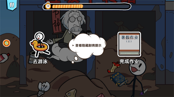 4、此时我们选择使用小熊饼干来混走门卫轻松逃学!