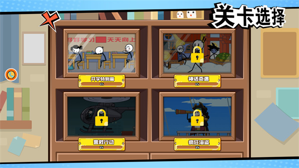火柴人大逃亡第2季是一款解谜类剧情导向游戏,玩家将操控火柴人在关卡内进行自由的探索,并且会有相关的剧情与任务来引导你进行正确探索。充满挑战的游戏玩法与过程中利用智慧来发觉更多的线索使用,面对关卡内给予的难题也能够轻松应对来寻找到正确的逃脱路线,整体卡通的画风让游戏的玩法与内容更进一层,并且随着关卡剧情的深入将会出现更多难解的谜题。成就系统的介入让游戏的难度更上一层楼,想要完成对应的成就需要达成的步数非常复杂,不断的练习来获取更多游戏成就吧。