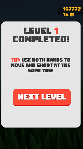 1、游戏的操作方式非常简单,左边屏幕控制移动,右边屏幕进行自动的瞄准射击。