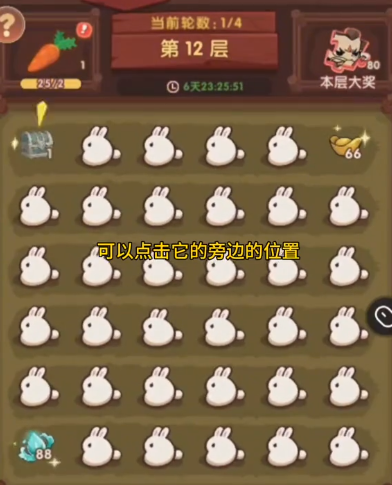每一层中打开四周四个角,如果没有找到大奖兔子,就去点击旁边的兔子来找到大奖,每轮20层的大奖等你来领取。