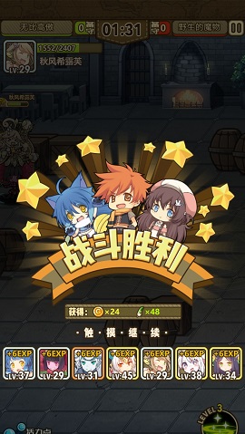 这时候在前排安排几个低星魔物,不要装备,一级管够。