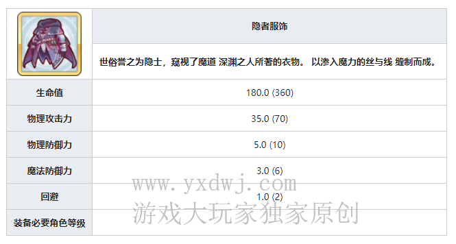 隐士服是物理近战纯输出职业或者布丁这种角色在R8需求装备的一款护甲类型的装备,需求量还是相当大的。
