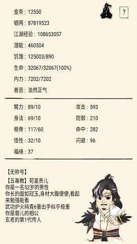 60层金轮法王,65夺命书生,70夺命书生,所以很容易就过了,复活一次,用了个熊猫药就过了,白嫖了380金条,付上福地属性图片,用武功是真降龙加混元。真降龙打一些拿武器的boos有奇效。