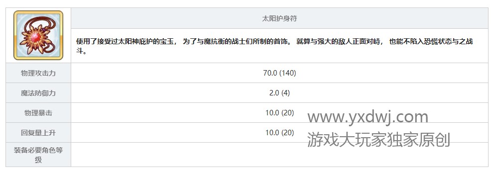 太阳护身符是是一款需求量超级大的护身符的装备,在里面可以说是很多角色都要带,是需求量暂时很大的衣服,R10也要用。