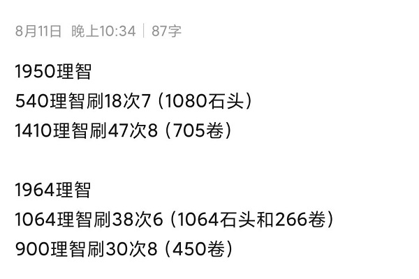 然后刷7图17次,一共1060黑曜石,接着全部刷8图门票。