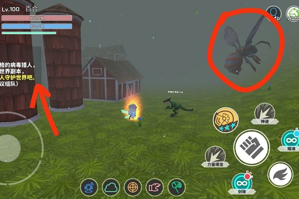 箭头指着的方向就是出生点大概的方向,红圈套着的就是蜂王了,那么我们怎么刷呢,首先呼叫支援。