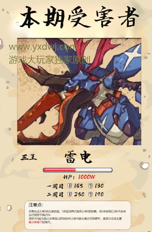 公主连结狮子座工会战三王雷电数据介绍