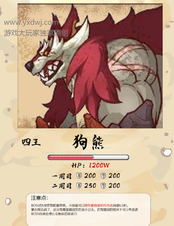 公主连结狮子座工会战四王狂乱魔熊数据介绍