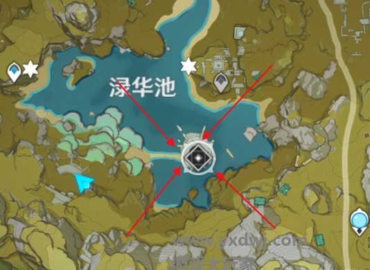 就在渌华池的下方,玩家可以从右边的小桥走过去或者邮过来都是可以的。