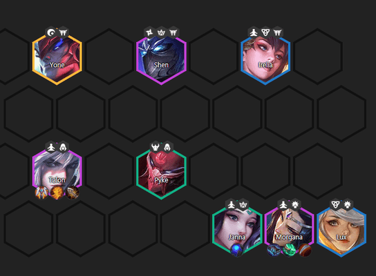 打完刺客野怪上7人口开始搜牌,搜出除了永恩之外的阵容牌,4费卡一星其他全2星即可停搜,继续存钱。