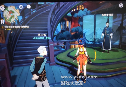 沿着璃月城里的书店的的走廊和楼梯一直走到三楼。