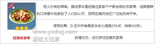 清策农家菜是一款能够增加玩家小队群体攻击力的菜肴,在你需要提升输出的时候很实用。