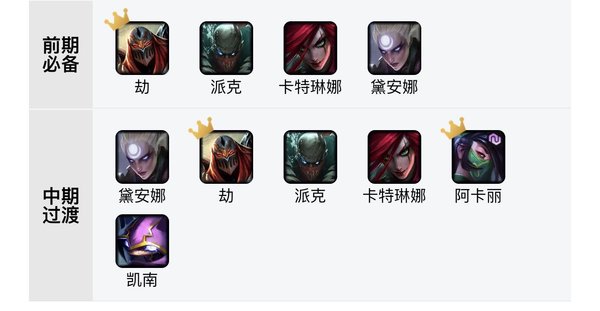 核心英雄没有变化,肯定是阿卡丽,不过阿卡丽新版本是三费卡,可能确实s4整体战力提升了,不过阿卡丽还是非常猛的!