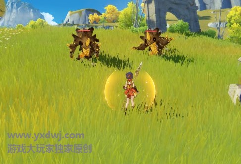 我们也可以用岩属性角色主动攻击产生护盾,然后撞翻它们之后快速更换高爆发角色击杀。