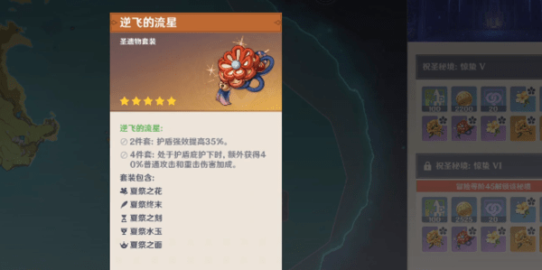 第二个推荐的本是这个孤云凌霄之处,也可以说是岩本,这个副本掉落两套圣遗物,分别是悠古的磐岩和这个逆飞的流星。因为会有很多玩家会对这两套圣遗物有误解,所以这边给大家讲一下这两套圣遗物的用途。首先这个悠古的磐岩,两件套岩属性加伤,很多人可能会认为他一套岩属性输出圣遗物,但是需要注意一下4件套的效果,是增加对应元素伤害,岩属性是不会和岩属性反应的,所以也没有所对应的晶片,也就提高不了输出,所以这套圣遗物的4件是辅助类的,想用这套的话正确的搭配方式应该是2磐石+2角斗,真正的输出圣遗物是后面这套逆飞的流星,两件套提供护盾强效,四件套提高普攻和重击伤害。为什么要说这个本是第二推荐刷呢,因为这套圣遗物可以同时刷好几个人的毕业圣遗物,如果你出攻击类的输出圣遗物就可以给凝光等岩系角色打输出,如果是出防御就可以给女仆。