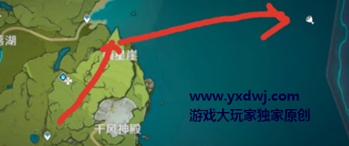中转山崖位置如图,需携带温迪或者安柏并且体力大于200。
